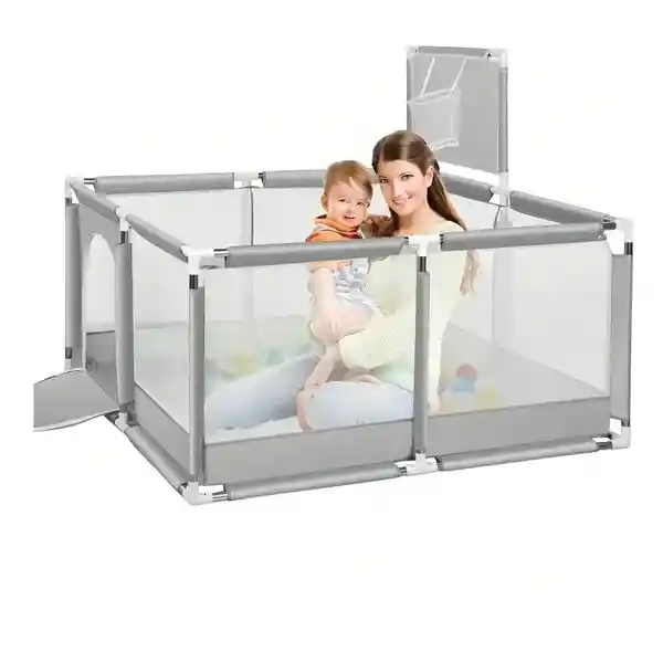 Las paredes del corral están hechas de malla transpirable, permitiendo una ventilación adecuada y visibilidad total para los padres, quienes pueden supervisar a los pequeños sin dificultad. Este diseño también favorece la interacción entre el niño y su entorno mientras se mantiene en un área protegida. La entrada cuenta con un sistema de cierre seguro y fácil de usar, pensado para que los adultos puedan acceder rápidamente al interior, pero evitando que los niños salgan sin supervisión. El tamaño cuadrado proporciona un amplio espacio para que los niños jueguen cómodamente con sus juguetes o incluso exploren sus primeros pasos dentro de un área segura. Las esquinas están redondeadas para evitar accidentes y garantizar la seguridad en todo momento. INCLUYE 3O PELOTAS