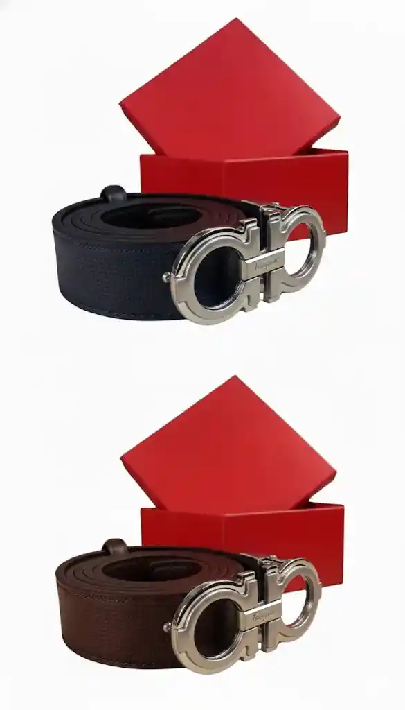 Eleva tu estilo con esta correa de lujo para hombre, diseñada con doble faz en color negro y azul, ideal para ...Ver más