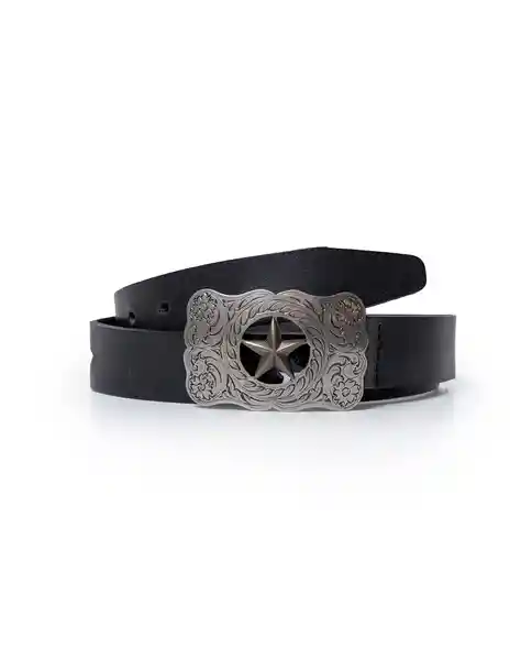 En Cuero de Talabartería 100% Vacuno. Chapa Metálica Con Detalles de Inspiración Western en Acabado Níquel Negro Claro. Tira Decorada Con Estrellas Troqueladas. Paso 28 mm. Construcción Delgada Versátil Refinada. Hardware Western Sofisticado. Ean- 211H001Neg194007 Plu- 1111133270938.