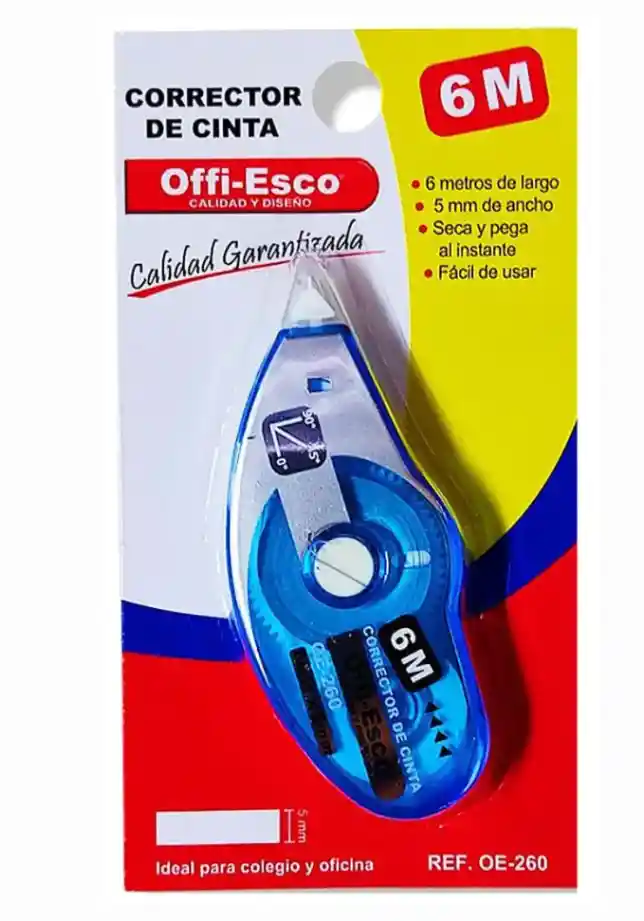 Corrector De Cinta con 6 metros de largo x 5 mm de ancho. Seca y pega al instante. Fácil de usar. Colores Surtidos se envia color segun disponibilidad