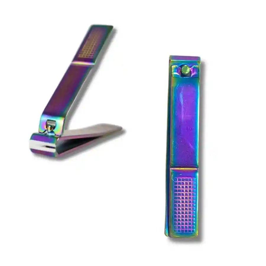 es un cortaúñas de uso profesional con un acabado iridiscente, diseñado para un corte preciso y limpio. es recto