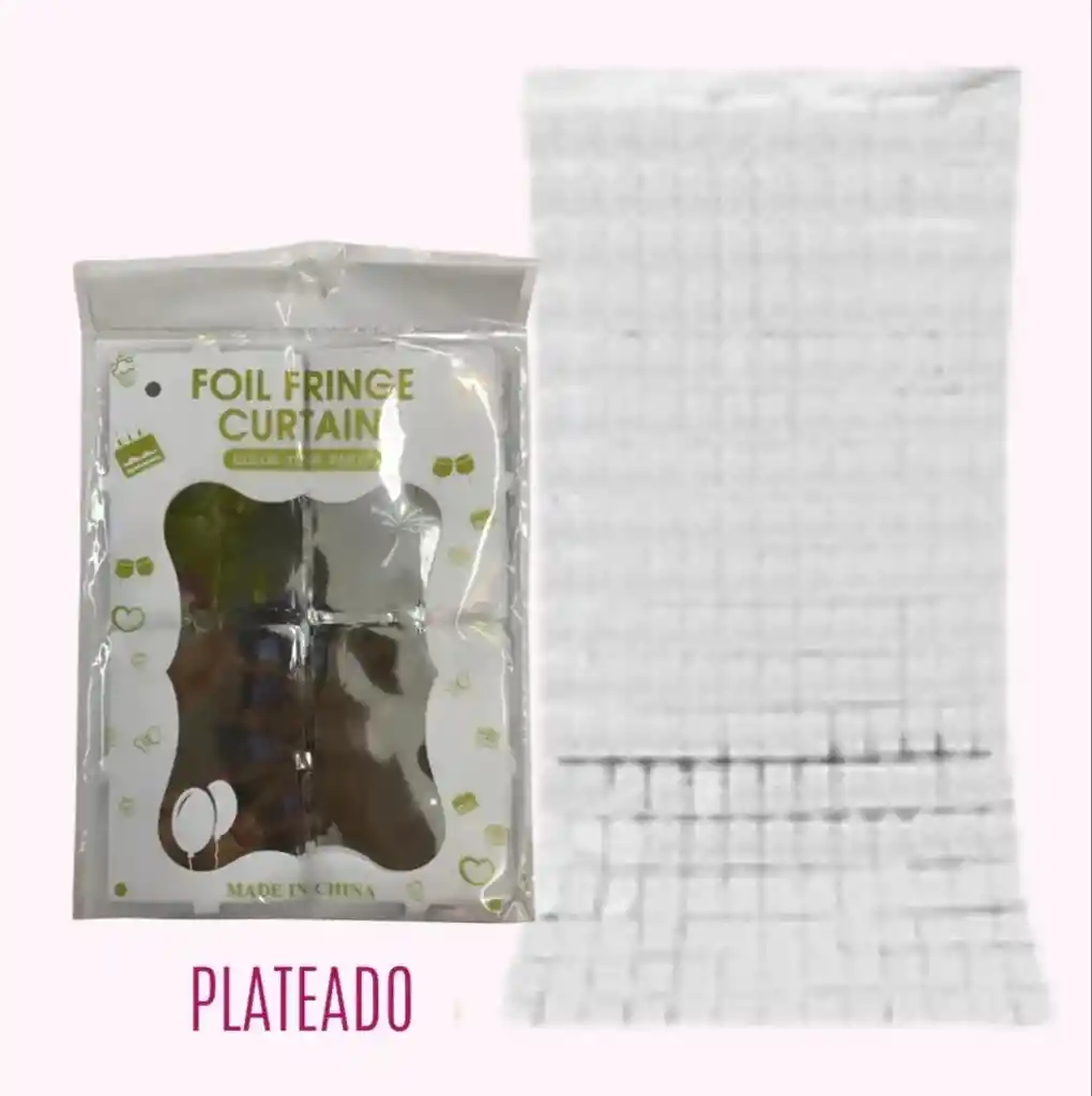CORTINA CUMPLEAÑOS CUADROS METALIZADA PLATEADA 1m X 2m COD.1743