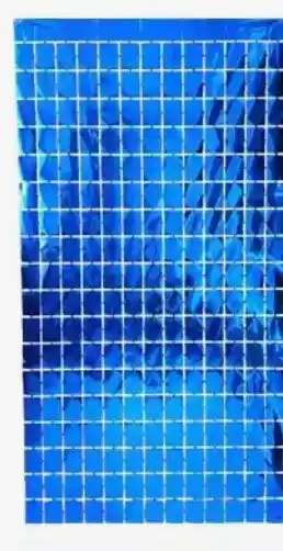 Cortina metalizada Azul de cuadros 2x1 metros lo último en decoraciones para tu fiesta de cumpleaños y celebraciones.