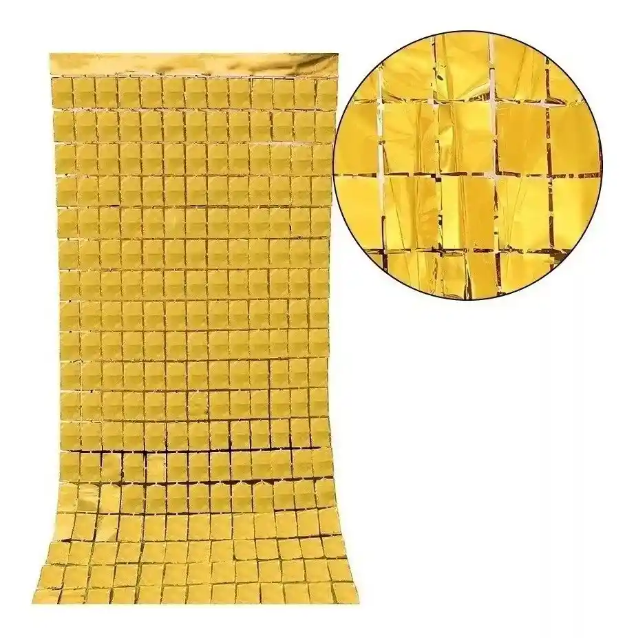 Cortina espejo de cuadros metalizadas para decoracion de Fiestas, Cumpleaños, Halloween, Carnaval, Colombia. Medidas aproximadas son: 1mt de ancho x 2mt de alto