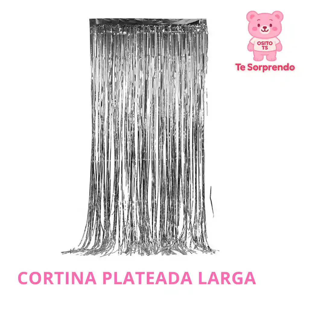 Cortina larga de fiesta color plateado, ideal para complementar tus decoraciones.