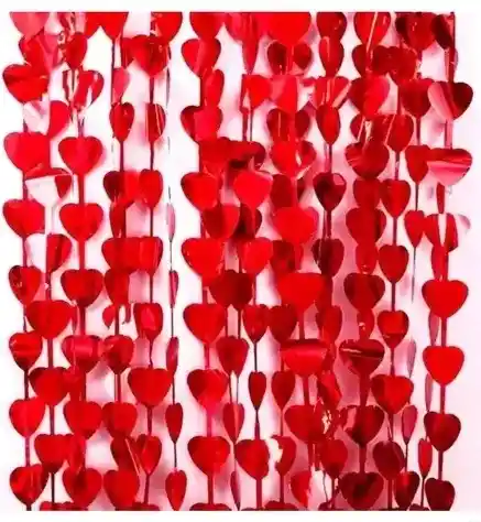 CORTINA METALIZADA DE CORAZONES AMOR Y AMISTAD SAN VALENTIN. La cortina tiene una medida aproximada de 1.20mt de ancho x 1.80mt de largo
