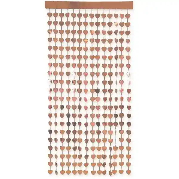 Cortina Metalizada ORO ROSA De Corazones Amor Y Amistad San Valentín La cortina tiene una medida aproximada de 1.20mt de ancho x 1.80mt de largo