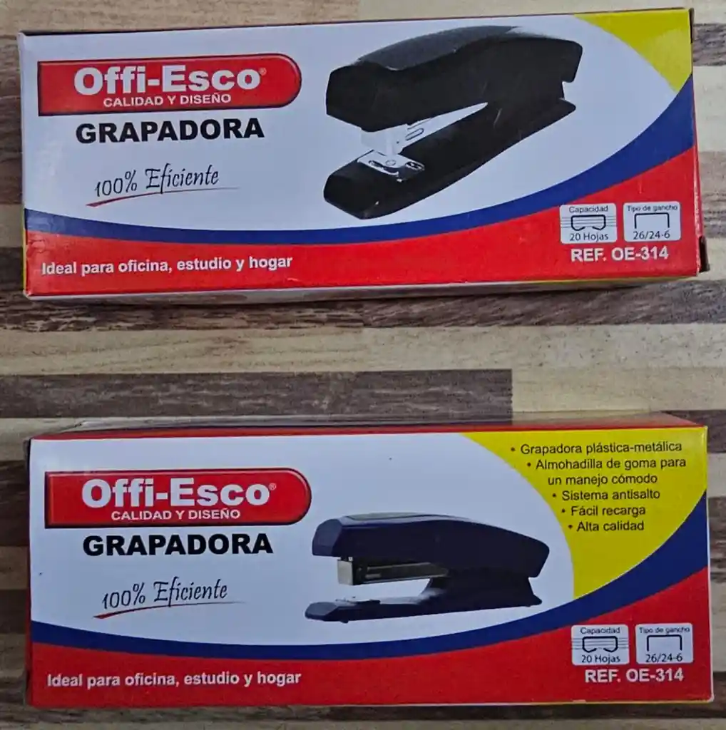 ======================================================================= BIENVENIDO/A NUESTRA TIENDA ELH COLOMBIA: "¡DE LA PANTALLA A TU HOGAR!" ======================================================================= GRAPADORA CANDY DE COLORES OE-314C Disponible en los colores: - Rosado - Azul Enviamos según disponibilidad de colores y enviamos el que solicites CARACTERÍSTICA: - Capacidad de 20 Grapas/Hojas - Compatible para ganchos 26/24-6 - Cubierta plástica de alta resistencia con soporte interno metálico - Estructura interna metálica Ideal para oficina, estudio y hogar Capacidad de 20 hojas
