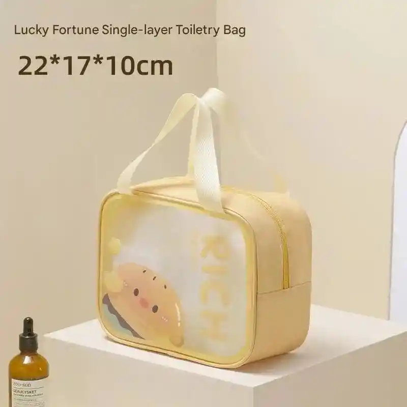 Este estuche para organizar tus objetos personales está fabricado en PVC de alta calidad y cuenta con cremallera para que todo quede seguro, además gracias a sus asas será más fácil de llevar a cualquier lugar. Sus medidas son 22x17x10 cm por lo que tiene gran capacidad. El diseño es súper lindo pues tiene caritas de animalitos y al ser traslúcido da un toque de frescura a tu estilo. Disponible amarillo y verde