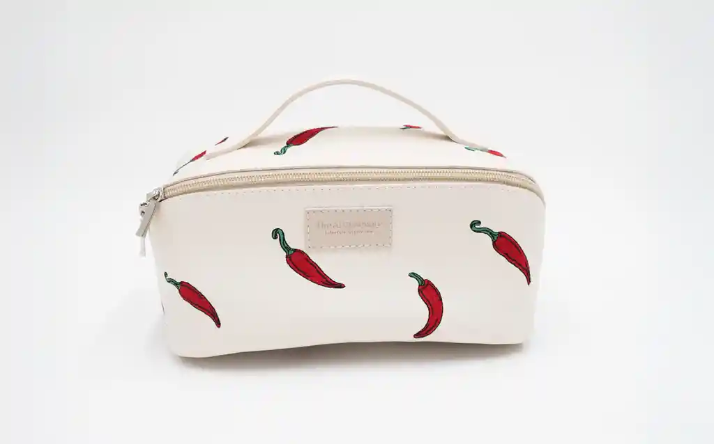Esta Cosmetiquera hecha a mano en Colombia con telas sintéticas. La cosmetiquera más viral de Tik Tok ahora con mejor calidad. Características: - Bordado con detalles de chilis - Forro anti fluido interno, fácil de limpiar. - Perfecto para llevar productos de maquillaje, aseo personal, colores, marcadores, medicina o todo lo que necesites llevar a la mano. - Llévala en tu bolso, morral o maleta . Medidas: 22 cm de ancho x 11 cm de alto x 10 cm de profundo