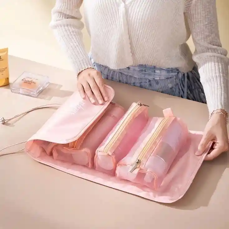 Material: Nylon/Malla. - Material impermeable de fácil limpieza. - 4 bolsillos internos con cremallera. - Gran capacidad. - Se enrolla para ahorrar espacio. - Facil de transportar. Inlcuye: 1x Cosmetiquera desenrollable 4 en 1. *** SE ENVÍAN DISEÑOS O COLORES DE ACUERDO A LA DISPONIBILIDAD EN STOCK AL MOMENTO DE REALIZAR LA COMPRA, SI NECESITAS UN DISEÑO EN ESPECIAL DÉJANOS SABER ESCRIBIENDO AL CHAT PARA VALIDAR DISPONIBILIDAD** Importante: Debido a la diferencia de pantallas y efecto de la luz, el color real del artículo puede ser ligeramente diferente al color mostrado en las imágenes.