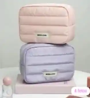 Cosmetiquera Puff Rosada, Lila Y Plateada