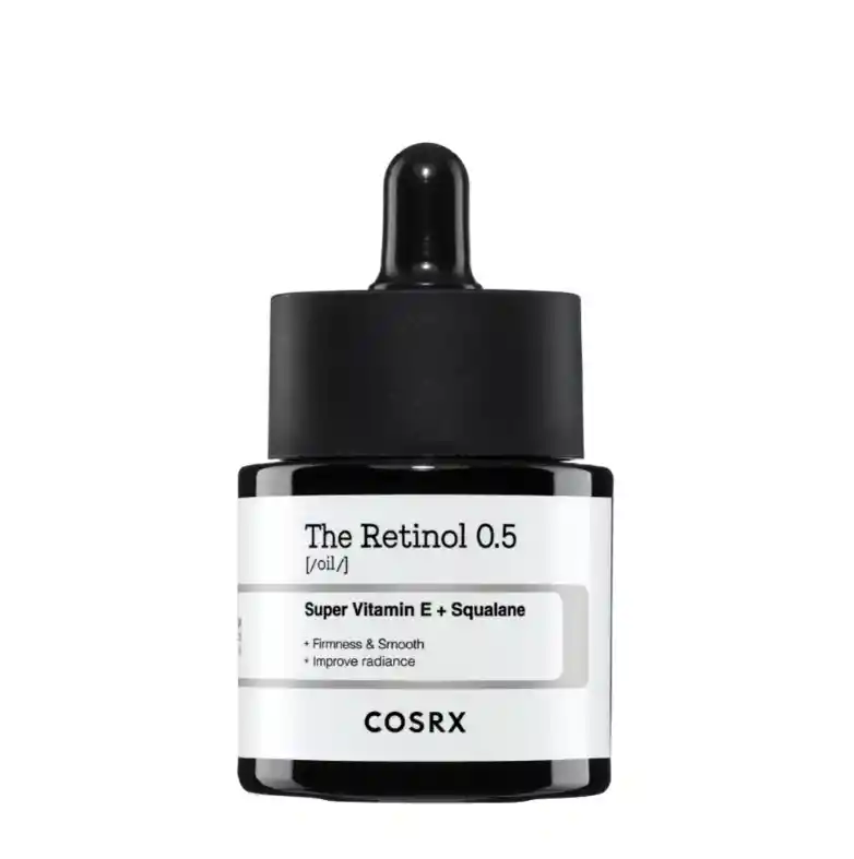 l COSRX Retinol 0.5 Super Vitamin E + Squalane es un tratamiento potente pero equilibrado, diseñado para mejorar la textura de la piel, atenuar líneas finas, apoyar la producción natural de colágeno y mejorar la luminosidad. La fórmula combina 0.5% de retinol puro con Vitamina E (antioxidante) y esqualano (hidratante y calmante), de manera que el retinol sea eficaz pero con menor irritación. ⭐ Beneficios principales Reduce líneas finas y arrugas Ayuda a mejorar textura y suavizar la piel Estimula la renovación celular Ayuda a corregir tono opaco y piel cansada Mantiene hidratación gracias al esqualano Vitamina E aporta protección antioxidante Es ideal para quienes ya toleran el retinol y quieren subir a una concentración intermedia (0.5%). 💧 Textura Ligera, tipo aceite-serum muy fino. Se absorbe bien y deja la piel flexible sin sentirse pesada. 🧴 Cómo usarlo correctamente Aplicar solo de noche Usar 2–3 veces por semana al inicio Siempre usar protector solar durante el día Evitar mezclar de inmediato con exfoliantes (AHA/BHA) o vitamina C fuerte Después puedes aplicar una crema hidratante para sellar