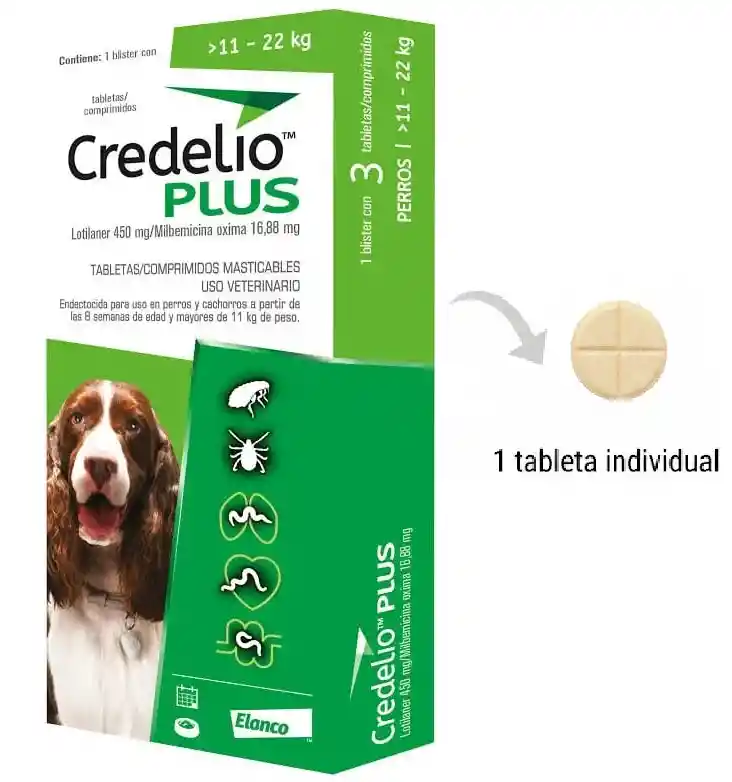 Credelio Plus Para Perros 1 Tab 11 A 22 Kg Garrapatas Y Antipulgas Parasitos Internos Y Externos