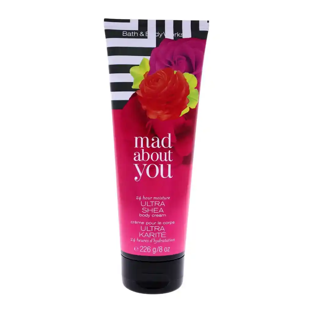 Crema Corporal ultra enriquecida de karité Loco por ti Grosellas negras, peonías brillantes y almizcle de vainilla Brinda 24 horas de hidratación nutritiva: Infundida de manteca de karité hidratante y ultra enriquecida Enriquecida con manteca de aloe y manteca de cacao Fórmula no grasa que penetra en la piel y brinda una lujosa fragancia e hidratación.