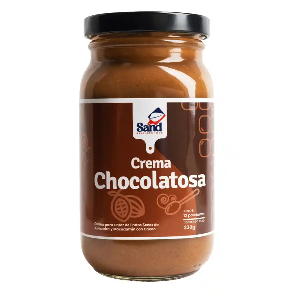 La Crema Chocolatosa Sand es la elección perfecta para los amantes de las almendas junto con la macadamia, el cacao y la panela orgánica. Su textura cremosa y suave se desliza fácilmente sobre cualquier superficie, convirtiendo cada bocado en una experiencia deliciosa. Elaborada con ingredientes de alta calidad, esta crema ofrece un sabor intenso y satisfactorio que deleitará a los paladares más exigentes. Beneficios: No contiene azúcar Son naturales sin aditivos Fuente de proteína Para todas las edades Aporta energía Beneficios adicionales Fibra: Aporta una buena cantidad de fibra, lo que favorece la digestión y ayuda a mantener la sensación de saciedad, contribuyendo al control del peso. Modo de uso: Puedes usarlo como esparcible en una tostada, puedes acompañarlo con frutas como el banano, la manzana, los arandanos, las fresas. Tambien puedes agragar a tu cereal favorito un poco de crema para dar un mejor sabor y tener un mejor alimento. Puedes hacer un delicioso sandwich de crema en cualquiera de sus sabores. Puedes enviarlo en la lochera del colegio o usarlo como snack en el trabajo. Otros modos de uso: Batidos Energéticos: Agrega una cucharada a tus batidos de la mañana para un extra de proteína y energía sostenida. Combina bien con leche (vegetal o animal), avena y frutas. Aderezo para Frutas: Úsala como un dip cremoso para rodajas de manzana o pera, espolvoreando un poco de canela para un toque extra. Salsas Saladas: Sorprendentemente, la crema de maní puede ser la base para salsas deliciosas en platos asiáticos o africanos. Ideal para untar en tostadas, galletas o simplemente disfrutar a cucharadas, la Crema Chocolatosa Sand es versátil y se adapta a cualquier momento del día. Ya sea en el desayuno, la merienda o como un snack, su sabor chocolatoso complementa perfectamente la riqueza de las almendras y las macadamias, brindando un equilibrio ideal entre dulzura y cremosidad. Este producto es perfecto para quienes buscan un toque especial en sus recetas. Úsala en batidos, postres o como ingrediente en tus preparaciones favoritas para añadir un sabor único y delicioso. La Crema Chocolatosa Sand no solo es un deleite para el paladar, sino que también aporta energía y satisfacción en cada porción. Disfruta de la calidad y el sabor que solo Sand puede ofrecer. Con su práctico frasco, es fácil de almacenar y llevar contigo a donde quieras. Haz de cada momento un instante especial con la Crema Chocolatosa Sand, un producto que transforma lo cotidiano en algo extraordinario. CHOCOLATOSA Cacao, Mantequilla de almendras, Crema de almendras, Mantequilla de macadamia, Crema de nuez, Sin azúcar, Sin conservantes, Vegano, Natural, Orgánico, Bajo en carbohidratos, Proteína vegetal, Snack saludable, Colaciones saludables, Untable natural, Sin gluten, Sin aditivos Beneficios Alta en proteína, Fuente de energía, Rica en grasas buenas, Ideal para desayuno, Perfecta para postres, Merienda saludable, Para deportistas, Apto para veganos, Dulce sin azúcar, Ideal para niños, Apto para diabéticos, Sin aceite de palma, Nutrición consciente, Healthy food, Real food, Alimentación saludable, Fit, Runners, Entreno, Entrenamiento, Ciclistas, Alto rendimiento Tu compra Compra online, Entrega a domicilio, Pago seguro, Compra saludable, Calidad premium, Hecho con amor, Sabor auténtico, Tienda saludable, Producto local