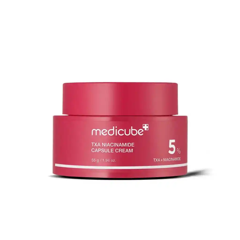 La Medicube TXA Niacinamide Capsule Cream 55 g es una crema facial formulada con cápsulas activas que combinan TXA (Ácido Tranexámico) y Niacinamida, diseñada para mejorar la uniformidad del tono de la piel y reducir la apariencia de manchas oscuras. Su textura ligera y de rápida absorción proporciona hidratación profunda, refuerza la barrera cutánea y ayuda a mantener la piel radiante y saludable. Beneficios: - Corrección de manchas y tono desigual: TXA y niacinamida ayudan a reducir la apariencia de manchas oscuras y marcas de acné. - Hidratación intensa: Mantiene la piel humectada sin sensación grasa. - Protección de la barrera cutánea: Fortalece y repara la piel sensible o debilitada. - Textura ligera: Se absorbe fácilmente, dejando la piel suave y confortable. - Ideal para piel propensa a manchas o con hiperpigmentación: Uso regular ayuda a unificar el tono y mejorar la luminosidad natural. Modo de uso: - Aplicar una cantidad moderada sobre rostro limpio y seco. - Masajear suavemente hasta su completa absorción. - Puede utilizarse en la mañana y noche como parte de la rutina de cuidado de la piel. - Para mejores resultados, combinar con sérums o tónicos que complementen la acción iluminadora y correctora de manchas. Ingredientes: - TXA (Ácido Tranexámico): Reduce la apariencia de manchas y uniformiza el tono de la piel. - Niacinamida: Mejora la barrera cutánea, aporta luminosidad y previene hiperpigmentación. - Agentes humectantes: Glicerina, propanediol o similares, para mantener la hidratación. - Emolientes ligeros: Para mejorar la absorción y suavizar la piel. - Extractos calmantes o antioxidantes (como alantoína o extracto de centella asiática) para piel sensible. - Sin fragancias fuertes: Minimiza riesgo de irritación en pieles sensibles.