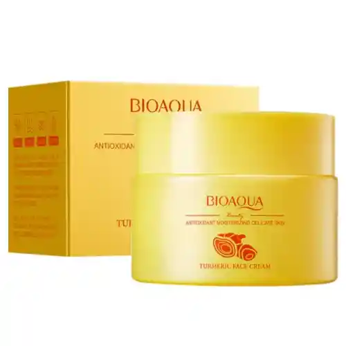 La CREMA FACIAL DE CURCUMA de BIOAQUA es un producto de cuidado de la piel que aprovecha las propiedades antioxidantes y antiinflamatorias de la cúrcuma para hidratar, revitalizar y calmar la piel, además de ayudar con las manchas y el acné. Características y Beneficios: -La crema facial natural BIOAQUA con cúrcuma (BIOAQUA Turmeric Antioxidant Moisturizing facial Cream) está diseñada para todo tipo de piel, incluyendo piel sensible, y ofrece múltiples beneficios gracias a sus ingredientes clave como el extracto de raíz de cúrcuma y, a menudo, ácido hialurónico. -Antioxidante: La cúrcuma es rica en antioxidantes, lo que ayuda a combatir los radicales libres y a proteger la piel contra el fotoenvejecimiento causado por la exposición solar. -Hidratación Profunda: Proporciona una hidratación duradera sin dejar una sensación grasosa, gracias a ingredientes humectantes como la glicerina y el ácido hialurónico. -Alivio y Calma: Sus propiedades antiinflamatorias son efectivas para calmar la piel irritada, reducir el enrojecimiento y aliviar afecciones cutáneas, además de ayudar con los síntomas del acné. -Mejora del Tono y Textura: Ayuda a reducir la apariencia de manchas oscuras, unificar el tono de la piel y mejorar la textura general, aportando luminosidad natural. -Combate el Acné: Es beneficiosa para pieles propensas al acné, ya que alivia la inflamación y puede ayudar a reducir las marcas y cicatrices del acné.