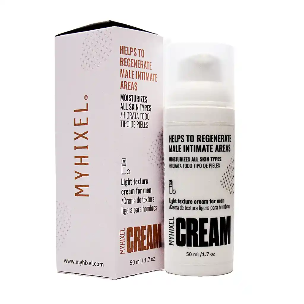 La crema íntima masculina MYHIXEL Cream tiene una textura ligera y fácil de aplicar. Se absorbe rápidamente en la piel y se recomienda su uso como medida preventiva contra la picazón o la sequedad de la piel del pene o los testículos. Es de textura ligera, desarrollada para las zonas íntimas masculinas, cuya riqueza en principios activos ayuda a regenerar la piel y a mantener la humedad óptima de esta zona. La baba de caracol, el jugo de Aloe vera y el ácido hialurónico ayudan a hidratar en profundidad la piel de las zonas íntimas. Aloe vera jugo (Aloe Barbadensis Leaf Juice): activo con efecto hidratante y calmante, que cuenta con propiedades reepitelizantes y antienvejecimiento. Baba de caracol (Snail Secretion Filtrate): ingrediente que cuenta con activos tales como proteínas de composición muy parecida a las de la dermis humana, Vitaminas del grupo B, Alantoína que actúa favoreciendo la proliferación celular y regeneración del tejido cutáneo, Alfa-hidroxiácidos que descaman las capas más externas y deterioradas de la epidermis, Mucopolisacáridos que dan tacto lubricante y resbaladizo hidratando la superficie, Antiproteasas que controlan la acción de las enzimas cutáneas que degradan el colágeno y la elastina, limitando su actividad a lo estrictamente necesario. Ácido hialurónico (alto peso molecular): molécula de alto peso molecular que tiene la capacidad de formar una capa filmógena sobre la piel de tal manera que garantiza el mantenimiento del nivel hídrico sobre la superficie cutánea. Características: 50 mL. Hidratación y protección de la piel íntima masculina. Prevención de la picazón y la sequedad. Ayuda a la regeneración de la piel. Previene el envejecimiento. Modo de uso: Aplicar cantidad suficiente sobre la zona a tratar, masajear hasta total absorción. Repetir una o dos veces al día. Uso externo. Ingredientes: Aqua (Water), Dibutyl Adipate, Aloe Barbadensis Leaf Juice, Dicaprylyl Carbonate, C12-20 Acid PEG-8 Ester, Pentylene Glycol, Caprylic/Capric Triglyceride, Glycerin, Glyceryl Stearate SE, Glyceryl Stearate, Propylene Glycol, Phenoxyethanol, Cetyl Potassium Phosphate, Acrylates/C10-30 alkyl acrylates Crosspolymer, L-Arginine, Snail Secretion Filtrate, Sodium Hyaluronate, 1,2 Hexanediol, Caprylyl Glycol, Ethylhexylglicerin, Benzyl Alcohol, Potassium Sorbate, Sodium Benzoate. Recomendaciones: Evitar el contacto con las heridas y ojos. Si produce reacción adversa, tal como picazón, sequedad o enrojecimiento persistente, suspender su uso. Si no mejora, acuda a su médico. Manténgase fuera del alcance de los niños. En caso de contacto con los ojos, lavar inmediatamente con abundante agua. Mantener los envases bien cerrados, en lugar fresco y al abrigo de la luz solar directa.