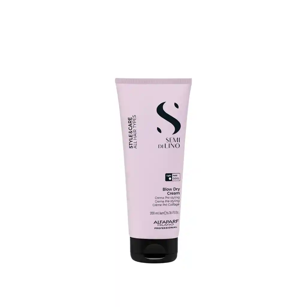 La crema Blow Dry de la línea Semi di Lino de Alfaparf es una crema ligera de styling que facilita y acelera el secado del cabello. Combate el frizz sin apelmazar, dejando el cabello suave, ligero y con movimiento natural. Además, ofrece protección térmica hasta 230 °C, preparando el cabello para peinados con secador o herramientas de calor. Su fórmula incorpora complejos exclusivos que cuidan la fibra capilar, protegen el color y ayudan a mantener el cabello saludable frente a agresores externos. Beneficios: - Secado más rápido y fácil, reduciendo el tiempo de uso del secador. - Control del frizz y efecto anti-encrespamiento, ideal para climas húmedos o cabello rebelde. - Textura ligera y no apelmazante: deja el cabello suelto, natural y con movimiento. - Protección térmica hasta 230 °C, cuidando la fibra capilar frente al calor de secador o plancha. - Facilita el peinado y el desenredado, lo que mejora la manejabilidad del cabello. - Brillo y suavidad duraderos, gracias a sus complejos nutritivos y protectores. - Protección ante agresores externos, calor, contaminación y variaciones de clima, preservando la salud capilar. - Adecuado para todo tipo de cabello, incluso en rutinas profesionales o peinados elaborados. Modo de uso: - Sobre el cabello húmedo (después del lavado y con exceso de agua eliminado con toalla), aplica una cantidad moderada de crema. - Distribuye uniformemente desde medios hasta puntas, asegurándote de cubrir bien todo el cabello. - Procede a secar con secador y peinar como de costumbre, la crema facilita el secado y ayuda a lograr un acabado suave y sin frizz. - Ideal como base para peinados estructurados o estilos lisos/definidos, o simplemente para obtener un cabello manejable, suave y con brillo natural.