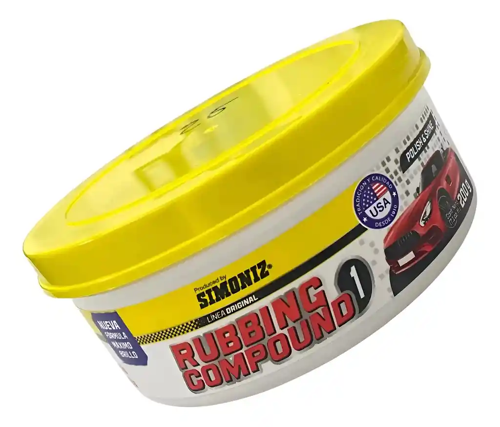 Crema Pulidora Rubbing PLUS: La crema pulidora Simoniz no solo mejora la apariencia de la pintura, sino que también contribuye a proteger la superficie del vehículo su capacidad para eliminar arañazos. DESCRIPCIÓN La Crema Pulidora Rubbing Simoniz de 200 gr es un producto diseñado para mejorar y restaurar la apariencia de la pintura en automóviles y motocicletas esta fórmula especializada ayuda a eliminar arañazos superficiales, manchas y opacidad. Devolviendo el brillo y la vitalidad a la superficie de la pintura la crema pulidora Simoniz es efectiva en la eliminación de imperfecciones menores, oxidación y marcas de agua, proporcionando un acabado suave y renovado a la carrocería del vehículo. CARACTERÍSTICAS - Crema pulidora Rubbing Simoniz para automóviles y motocicletas. - Restaura y mejora la apariencia de la pintura. - Elimina arañazos superficiales, manchas y opacidad. - Efectiva en la eliminación de imperfecciones menores y oxidación. - Proporciona un acabado suave y renovado. - Puede aplicarse manualmente o con herramientas específicas. - Fórmula especializada para resultados eficaces. - Ideal para uso en la carrocería del vehículo. - Ayuda a devolver el brillo original a la pintura. - Formato de 200 gr para múltiples aplicaciones. MEDIDAS Diámetro: 11 cm Alto: 4,5 cm Peso: 302 g QUE INCLUYE LA COMPRA X1 Crema Pulidora Rubbing