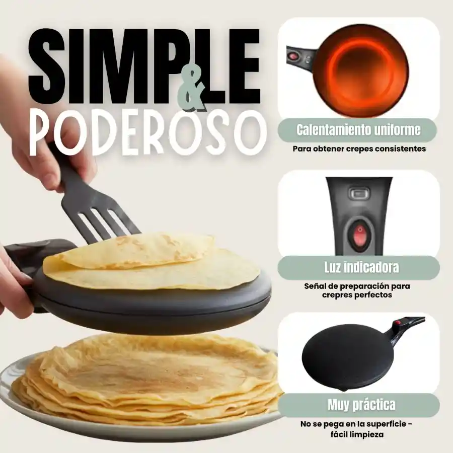 Crepera Eléctrica Versatilidad: la superficie de la placa con revestimiento antiadherente te permite hacer crepes, tortillas suaves, tacos, blintzes, rollitos de huevo, chapati y más favoritos del desayuno se calientan rápidamente en 20 segundos olvídate de tu vieja sartén para crepas. Longitud del cable: 27.5 pulgadas. Perfectamente combinado: nuestro crepes eléctrico con un controlador automático de temperatura evita quemaduras. Elemento calefactor de alta potencia 120v, 60hz, 800w, operado por un interruptor de encendido/apagado de una sola pulsación para indicar cuando la superficie está lo suficientemente caliente como para comenzar a cocinar. El diseño de mango largo para una fácil sujeción/operación ahorra espacio y te hace sentir seguro y te encanta usarlo. Muy conveniente: nuestra máquina de crepé es una placa de cocción compacta, rápida y conveniente. Esta crepera antiadherente tiene una gran área de aluminio fundido a presión de 8 pulgadas, por lo que es fácil crear crepes estilo restaurante. Precaliente la crepé, extienda una fina capa de masa y observe cómo se cocina su crepé en segundos. Fácil de limpiar: esta crepera eléctrica redonda con superficies antiadherentes es fácil de limpiar. Limpie la placa de cocción con un paño húmedo y su crepera eléctrica estará limpia. Asegúrese de que el aparato esté seco antes de guardarlo.