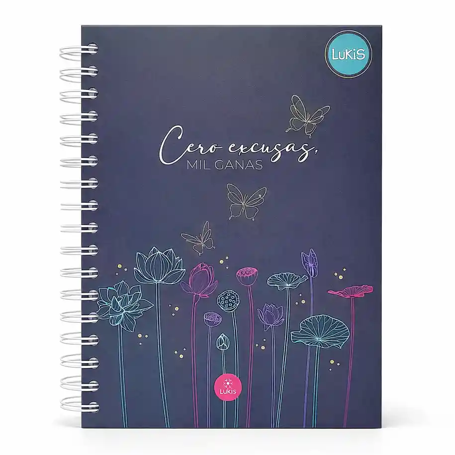 Cuaderno 5 materias pasta dura 160 hojas (320 páginas) Tamaño: 23 X 17cm Contiene en las primeras páginas planeador por días (lunes a domingo), lista para objetivos, tareas, habitos, planeador por meses (Enero a Diciembre), prioridades por mes y notas para "no olvidar". Además contiene, lista para objetivos de trabajo y personales, metas para el año y objetivos familiares y financieros. Cada materia tiene al inicio titulo, planeador mensual y lista de tareas. Mixto (rayado y cuadriculado) Materia 1: rayado Materia 2: rayado Materia 3: rayado Materia 4: cuadriculado Materia 5: cuadriculado