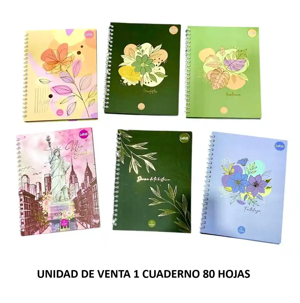 Cuaderno Argollado 80 Hojas Cuadriculado Lukis Diseños Surtidos Pasta Dura. EAN 7707320141156. Se envia diseño segun disponibilidad