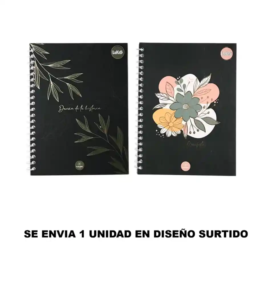 Cuaderno argollado de pasta dura Lukis Contiene bolsillo interno, planeador semanal, hoja para anotar tus prioridades objetivos y metas Tamaño 105 (carta) 80 Hojas Cuadriculadas a color Medidas: 28 cm x 21 cm DISEÑOS SURTIDOS. SE ENVÍA DISEÑO SEGÚN DISPONIBILIDAD