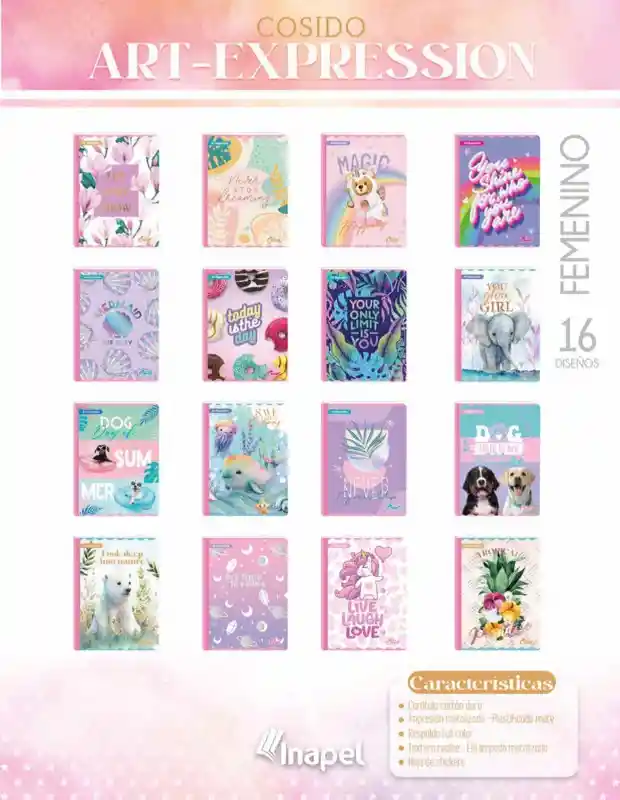 Cuaderno Cosido 100 Hojas Con Stickres Cuadriculado Femenino Art-expression Motivos Surtidos Gama Media
