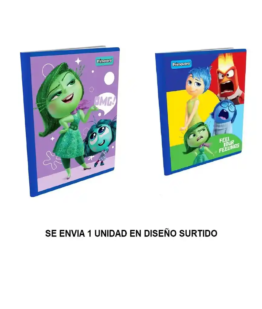 Hermosos Cuadernos De Motivo Intensamente. Con una hoja completa de Stickers. Caratula Uv Brillante, Plastificado Mate con Alto relieve brillante. Incluye una linda Hoja de marcado y notas y Horario al final del cuaderno. 100% Original Disney. 100 Hojas Cuadriculadas. Marca Primavera Descubre todas tus emociones con el Cuaderno Cosido Intensamente 2: Alegría, Furia, Tristeza, Desagrado, Envidia. Los personajes de La Película están aquí para acompañarte en tus aventuras escolares. SE ENVIA 1 UNIDAD EN DISEÑO SURTIDO