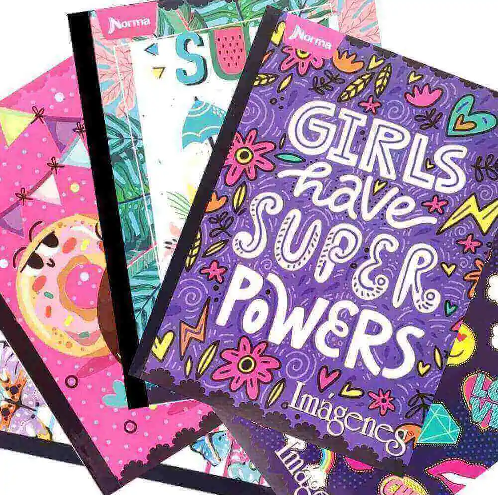 Cuaderno cosido 100 hojas cuadriculado para mujer, pasta semidura y no cuenta con stickers