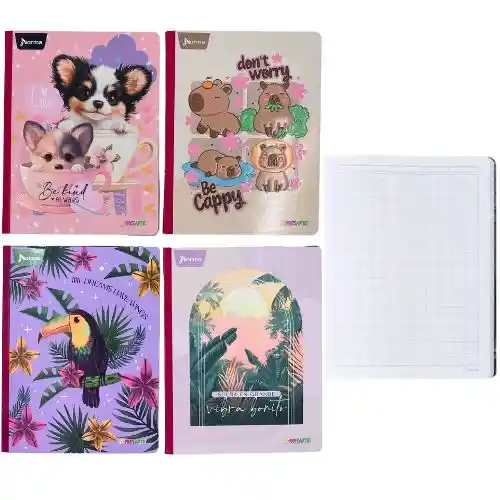 Cuenta con una pasta de diseños en alta calidad, elaborada en colores brillantes y con detalles en relieve que aportan textura y un acabado visual atractivo. Incluye además una hoja con stickers o pegatinas del mismo diseño del cuaderno, perfectas para personalizar apuntes y trabajos. Nota: Los diseños se envían según disponibilidad. Si deseas un diseño en particular, comunícate con nosotros a través del chat o déjalo indicado en los comentarios al momento de la compra. Gracias a su encuadernación cosida y a su pasta fina en cartón de calidad, este cuaderno ofrece buena resistencia y durabilidad para el uso diario en el colegio, la universidad o el hogar. 📋 Ficha técnica Marca: Norma Línea: Xpresarte Tipo: Cuaderno cosido Formato: Cuadros Hojas: 100 Pasta: Fina en cartón de calidad Diseño: Imágenes impresas en colores brillantes con detalles en relieve Incluye: 1 hoja de stickers decorativos