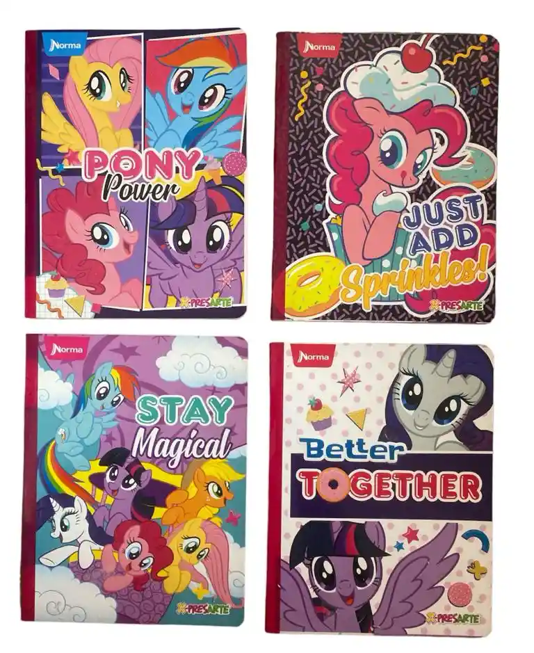 CUADERNO COSIDO PARA NIÑA PONY CON STIKER 100 HOJAS CUADRICULADO MARCA NORMA. DISEÑOS SURTIDOS. SE ENVÍA DISEÑO SEGÚN DISPONIBILIDAD