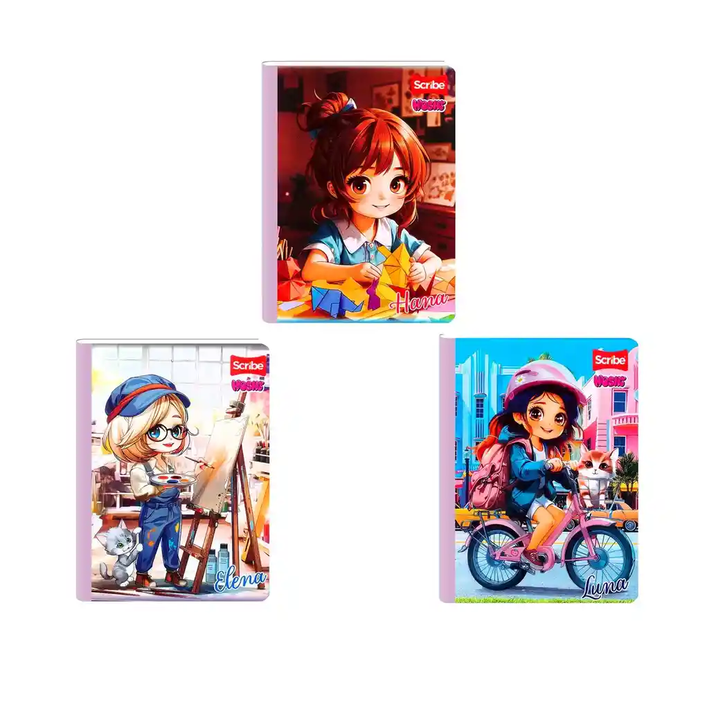 CUADERNO COSIDO SCRIBE CUADRICULADO HOSHI 100 HOJAS X3UCuaderno en portada seleccionada conforme titulo y fotos, se envia la cantidad relacionada en titulo, se envian diseños al azar, cantidad de hojas según titulo, envio por cuenta de comprador