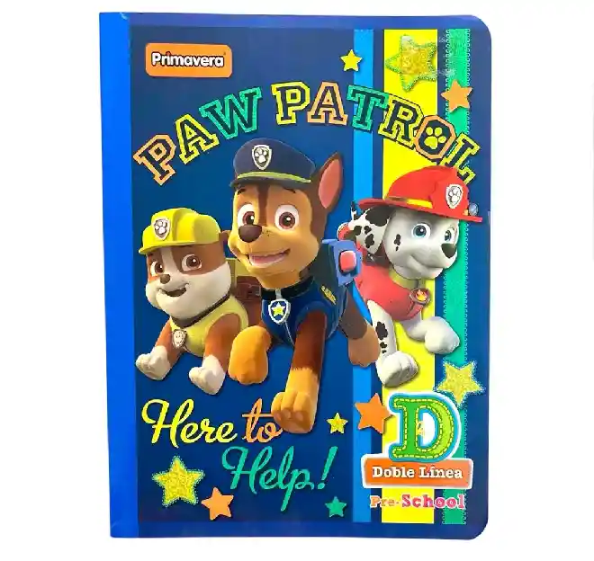 CUADERNO COSIDO NIÑO POW PATROL CON STIKER 100 HOJAS DOBLE LINEA MARCA PRIMAVERA. DISEÑOS SURTIDOS. SE ENVÍA DISEÑO SEGÚN DISPONIBILIDAD (Pre- school)