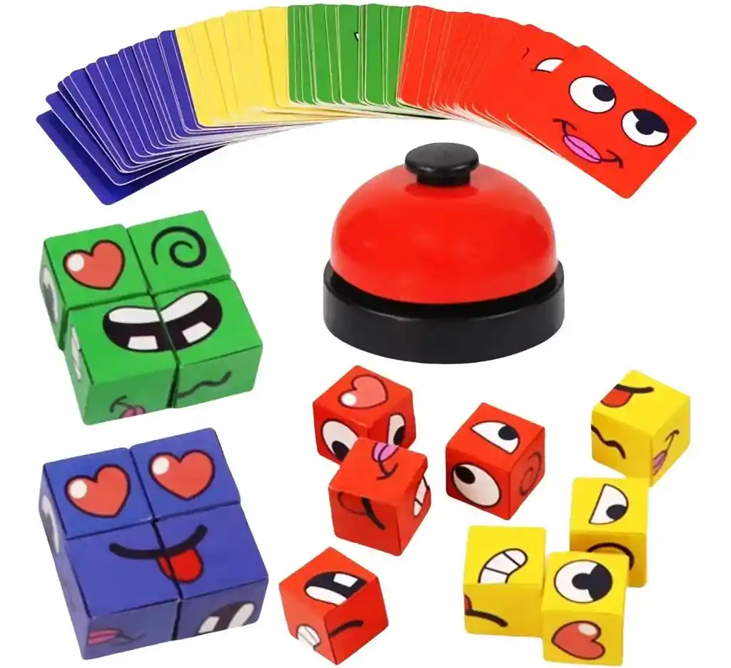 Juego De Mesa Cambia La Cara Montessori Cubo De Rubik Niños JUEGO DE CUBOS RUBIK EMOJIS CON LA METODOLOGÍA MONTESSORI Un juego creado para desarrollar el déficit de atención, la concentración, la creatividad y el pensamiento lógico. Potencia las relaciones sociales de los niños y fomenta la amistad entre ellos. Ideal para disfrutar en familia. BENEFICIOS QUE DESARROLLAS AL JUGARLO - Mejora el déficit de atención y concentración. - Mejora la memoria y la comprensión. - Desarrollo de la creatividad y el pensamiento lógico. - Desarrollo de habilidades sociales y emocionales. Las tarjetas emojis tienen esquinas redondeadas para reducir el riesgo de plegado. La superficie está recubierta con una membrana ligera e impermeable, resistente al agua y duradera. Hechos con madera maciza seleccionada, los bloques están recubiertos con pintura de protección ambiental, no tóxica y sin olor, con un patrón de calor vívido e indeleble. ESPECIFICACIONES: Edad Recomendada: 3 años en adelante Medidas Cubos: 4 cm (Ancho) x 4 cm (Largo) x 2 cm (Alto) Medidas del Paquete: 18 cm (Ancho) x 18 cm (Largo) x 3.5 cm (Alto) Peso del Paquete: 350 gramos Material: Madera Contenido: 16 bloques de 4 colores y 50 tarjetas de expresiones.