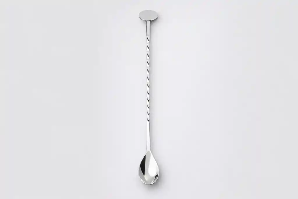Cuchara mezcladora profesional elaborada en acero inoxidable con acabado plateado brillante. Su diseño incluye mango trenzado para mejor agarre y control, disco plano en la parte superior ideal para mezclar y macerar, y cuchara ovalada en la base para dosificar con precisión. Largo: 30 cm Material: Acero inoxidable Color: Plateado Uso ideal: Coctelería, barismo y preparación de bebidas Perfecta para mezclar cócteles en vasos altos, preparar bebidas por capas y uso profesional en barra.