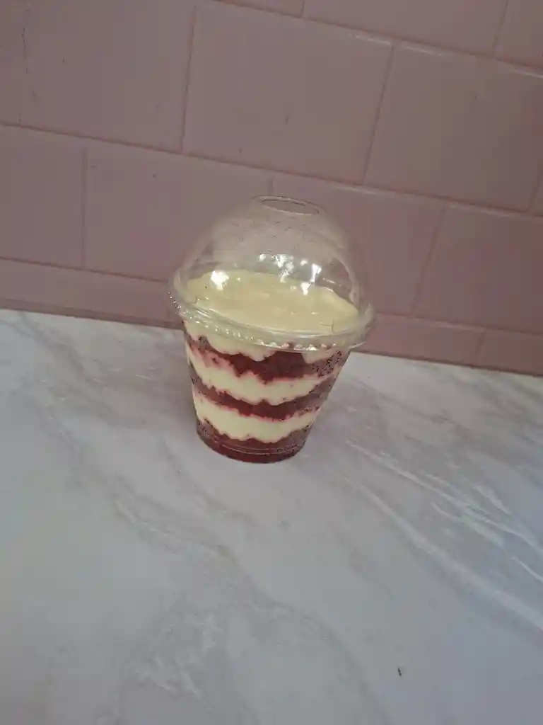 postre frio a base de torta de red velvet y crema de queso crema
