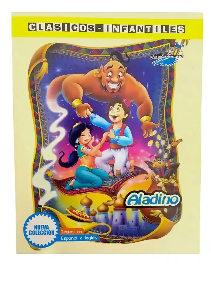 LIBRO DE CUENTOs PARA COLOREAR ALADINO TEXTOS EN INGLES Y ESPAÑOL EDITORIAL NIKA