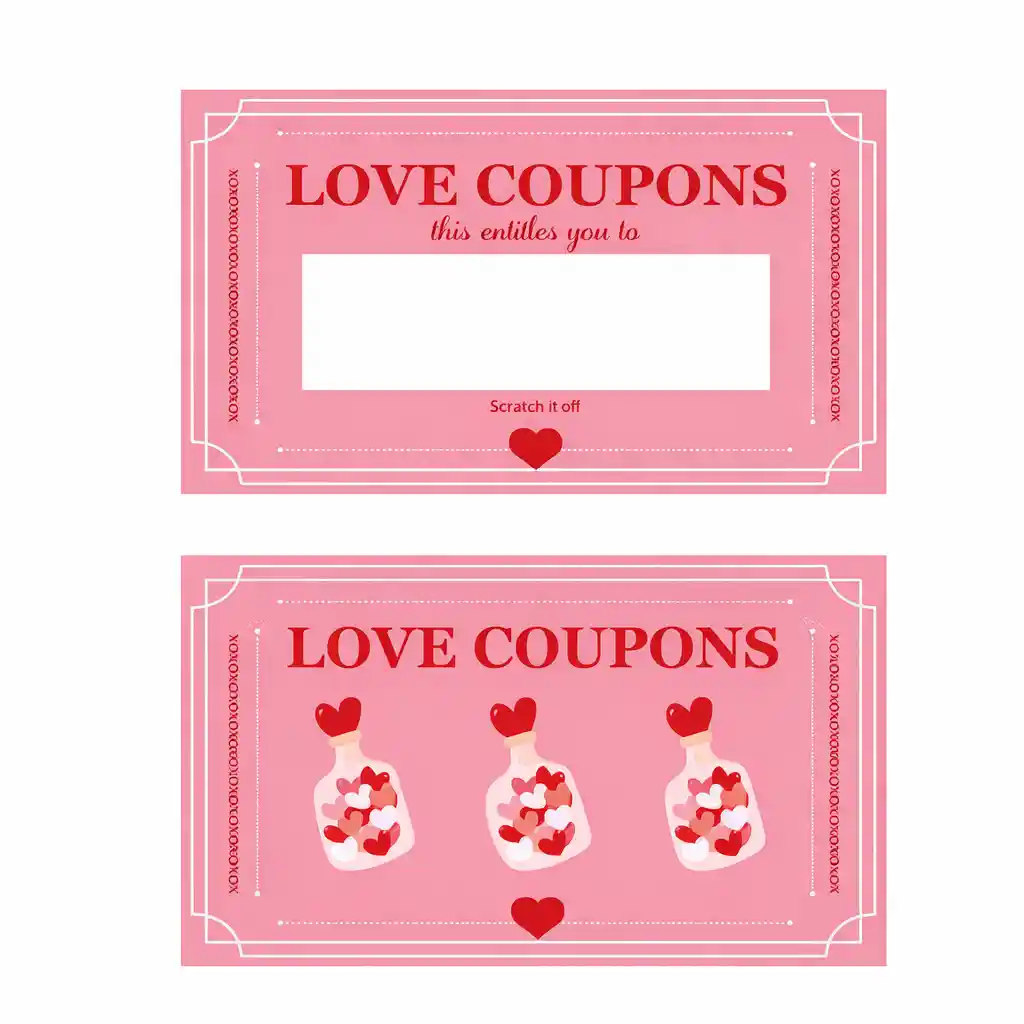 1 Tarjeta Raspable para San Valentín, incluye sticker raspable. Regalo Original para Novio, Esposo o Aniversario. Regalo para familiares, seres queridos de 7.5 cm / 8.5 cm Sorprende a tu pareja con estas divertidas Tarjetas Raspables de San Valentín. Escribe tu mensaje secreto, cúbrelo con el sticker incluido y deja que lo descubra rascando con una moneda. Perfectas como regalo romántico para novios, esposos o parejas, ideales para San Valentín, aniversarios, cumpleaños o noches de cita. ¡Agrega un toque único y picante a tu relación con este regalo personalizado y creativo!
