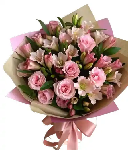Un bouquet armonioso de rosas rosadas y flores suaves que expresa cariño y buen gusto en cada detalle. Flores frescas de calidad premium, seleccionadas y armadas de forma profesional para un acabado natural y elegante. Algunas flores pueden variar según la disponibilidad de temporada, respetando siempre la estética y el valor del arreglo. Incluye tarjeta personalizada sin costo adicional.
