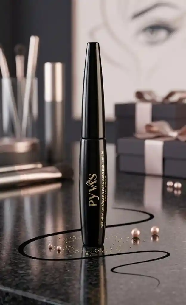 El producto es un delineador líquido de la marca PYVA'S, diseñado para ofrecer una aplicación precisa y un acabado duradero.