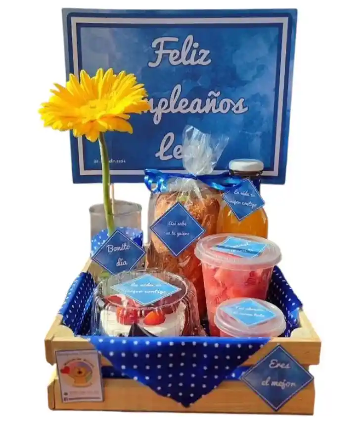 DESAYUNO SORPRESA 😲 EL CUAL TRAE { Sándwich , Ensalada de frutas , Torta pequeña , Jugo de naranja natural , mani , una flor natural, decoración , tarjeta personalizada } TENER EN CUENTA QUE LOS DESAYUNOS PIDEN CON UN DIA O DOS HORAS DE ANTICIPACION