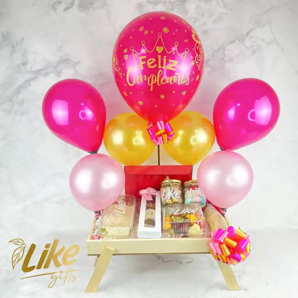 Sabores que despiertan emociones. Un regalo que deleitará todos tus sentidos y llenara su día de color y alegría. Contenido: 3 Rollos de Pollo Grandes. 1 Maridaje (Quesos, jamones y frutas). 1 Caja de Alfajores y Trufas con Chocolates x 5 unds. 1 Frasco de Frutos Secos. 1 Frasco de dulces y chocolates. 1 Capuccino 300ml. 1 Canasta de Madera Premium (Estilo Desayuno a la Cama). Decoración con Globos y Moño.