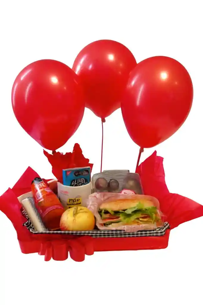¡Déjate seducir por nuestro Desayuno Mawchy Amanecer! 🌅✨ Una exquisita opción para comenzar el día de la mejor manera. Este desayuno en bandeja ofrece una presentación sencilla pero especial, que cautivará todos tus sentidos. Contiene: 1 sandwich de jamon y queso con vegetales - 1 jugo refrescante - 1 linda taza - 1 galleta integral - 1 queso y bocadillo - 1 fruta fresca - 1 bolw de uvas