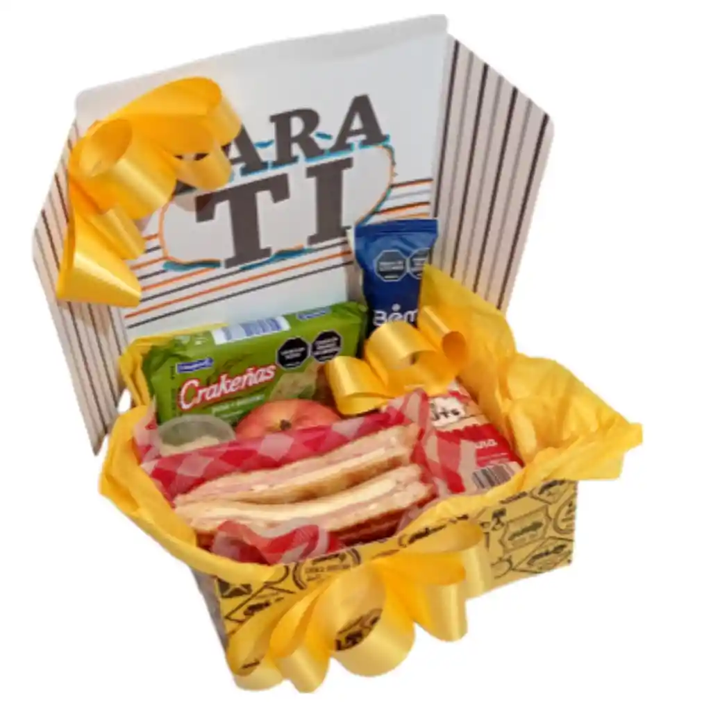 Sorprende a esa persona especial con nuestra Caja Desayuno Sorpresa Sencillo. Incluye un delicioso sándwich artesanal con doble queso y jamón, acompañado de una fruta fresca y un jugo revitalizante. Para deleitar aún más, disfruta de una galleta integral con aceite de oliva y una barra de granola.¡Agrega tu mensaje personal y un globo para hacer este regalo aún más especial! 🎁❤️ ¡Haz que cada desayuno sea una experiencia inolvidable!