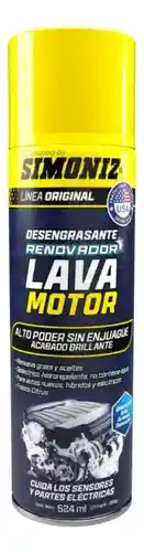 SIMONIZ Lava Motor – Limpiador de Motores (Aerosol) SIMONIZ Lava Motor es un limpiador de alto poder desengrasante, especialmente formulado para la limpieza profunda de motores, eliminando eficazmente grasa, aceite, lodo y suciedad acumulada sin necesidad de desarmar. Su fórmula actúa rápidamente sobre las superficies del motor, facilitando el mantenimiento y mejorando la apariencia general del compartimiento. Ideal para uso profesional y doméstico en talleres, lavaderos y mantenimiento automotriz.