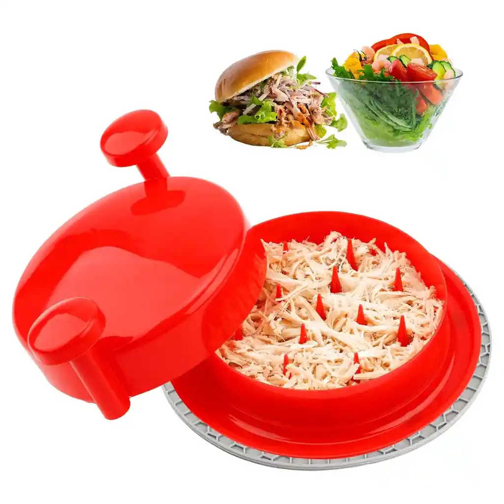 Somos TELEPRODUCTOS BOGOTA Productos 100% garantizados, años de experiencia en ventas online.! -Cuando realices la compra recibirás toda la información de contacto y datos para que puedas hacer seguimiento a tu producto.! ----------------------------------------------------------------------------------------------------------------------- NOTA: EL PRODUCTO NO VIENE CON LA BASE ANTIDESLISANTE QUE SE OBSEVA EN LA IMAGEN. Nuestro producto: La trituradora de pollo está hecha de material de poliestireno resistente a los impactos (HIPS) de alta calidad, libre de BPA, duradero. Este manipulador y triturador de carne es manual y esta trituradora de pollo tamaño portátil, diámetro: 7.87 pulgadas, altura: 3.15 pulgadas, no ocupará demasiado espacio en tu cocina. Simple, rápido y fácil de usar: funciona bien si lo haces bien, primero, funciona mejor en carne tibia, pon pequeños cubos de pollo en el centro, no pongas trozos demasiado grandes en él y voltea tu carne; principalmente es triturar en un lado de la forma en que está diseñado, así que haz algunas vueltas y luego dale la vuelta a tu carne y haz algunas vueltas más. Si lo haces así, funciona bien y va rápido. Cuanto más lo gires o gires, mejor triturarás terminas. Ya no te quemarás las manos con pollo caliente. Fácil de limpiar: simplemente rocía y pasa por el lavavajillas o lávala a mano con un cepillo de cerdas largas entre las púas o utiliza un cepillo para biberón para bebés para meterse entre los picos de trituración y es fácil de limpiar. Después de utilizar este utensilios de cocina para picador de alimentos, todo el jugo permanece en la base también. Ya no te preocupes por dejar un desorden en la encimera. Garantía del vendedor: 30 días