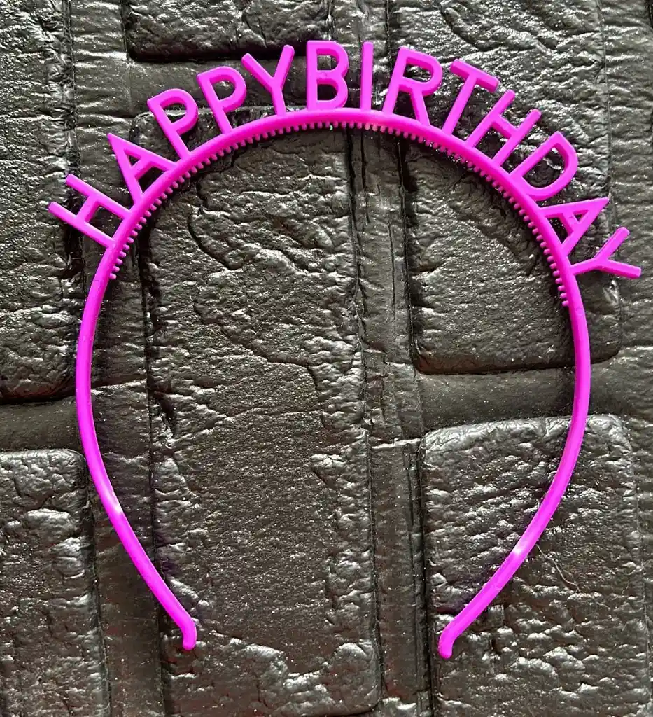 DIADEMA BALACA FELIZ CUMPLEAÑOS PASTA MORADO NEON COD.2440